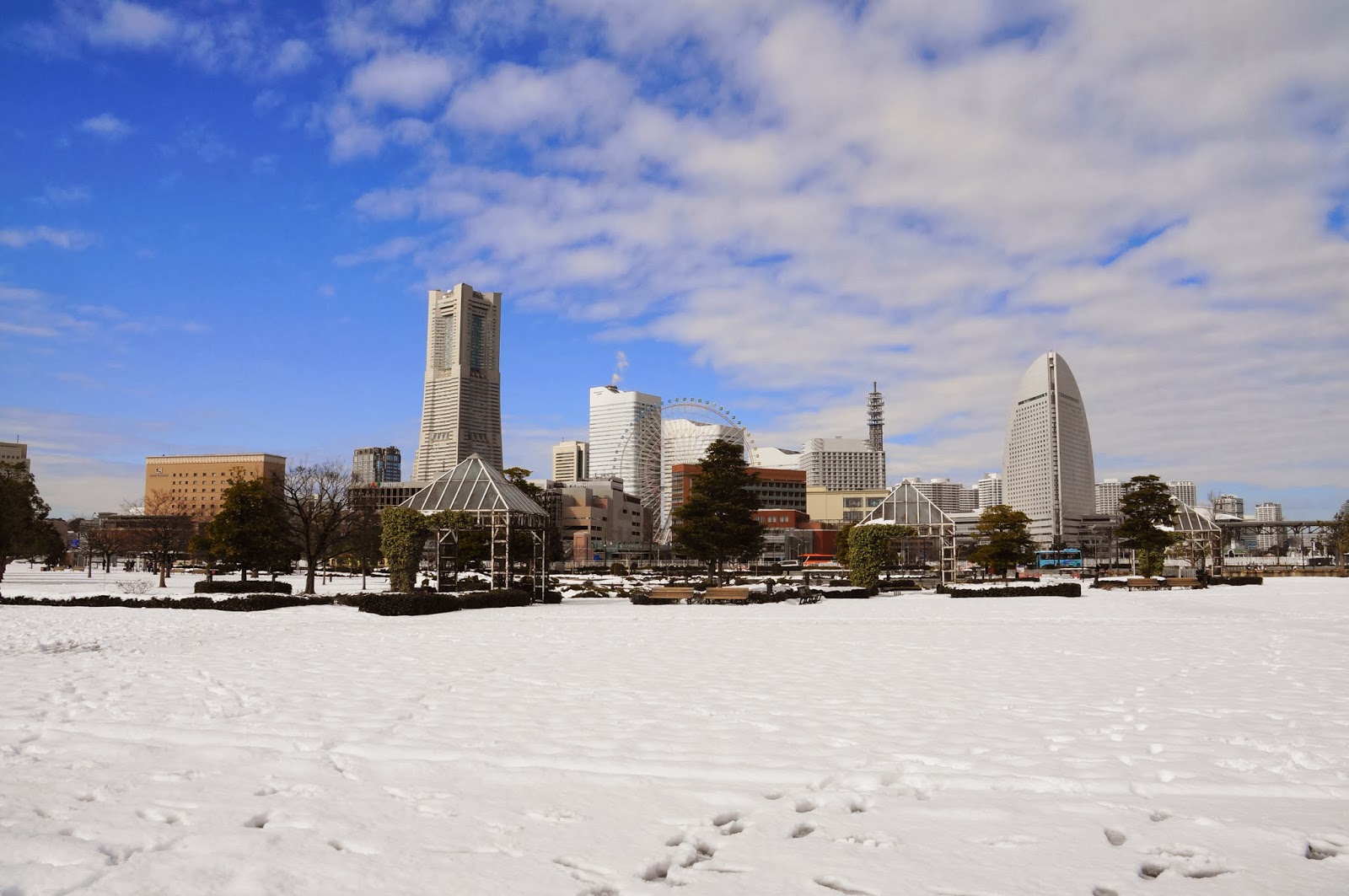 到着した横浜桜木町からは積雪歩道の坂道をラッセル。